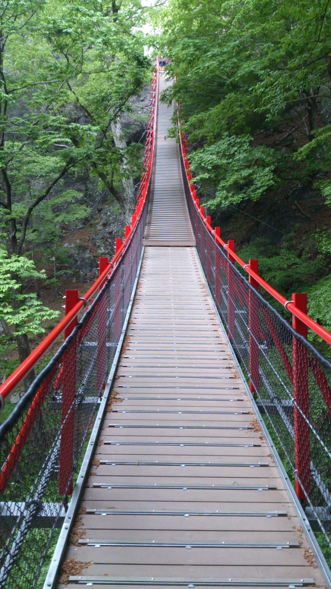 吊り橋のような、階段のような、急な橋が架かっていました。