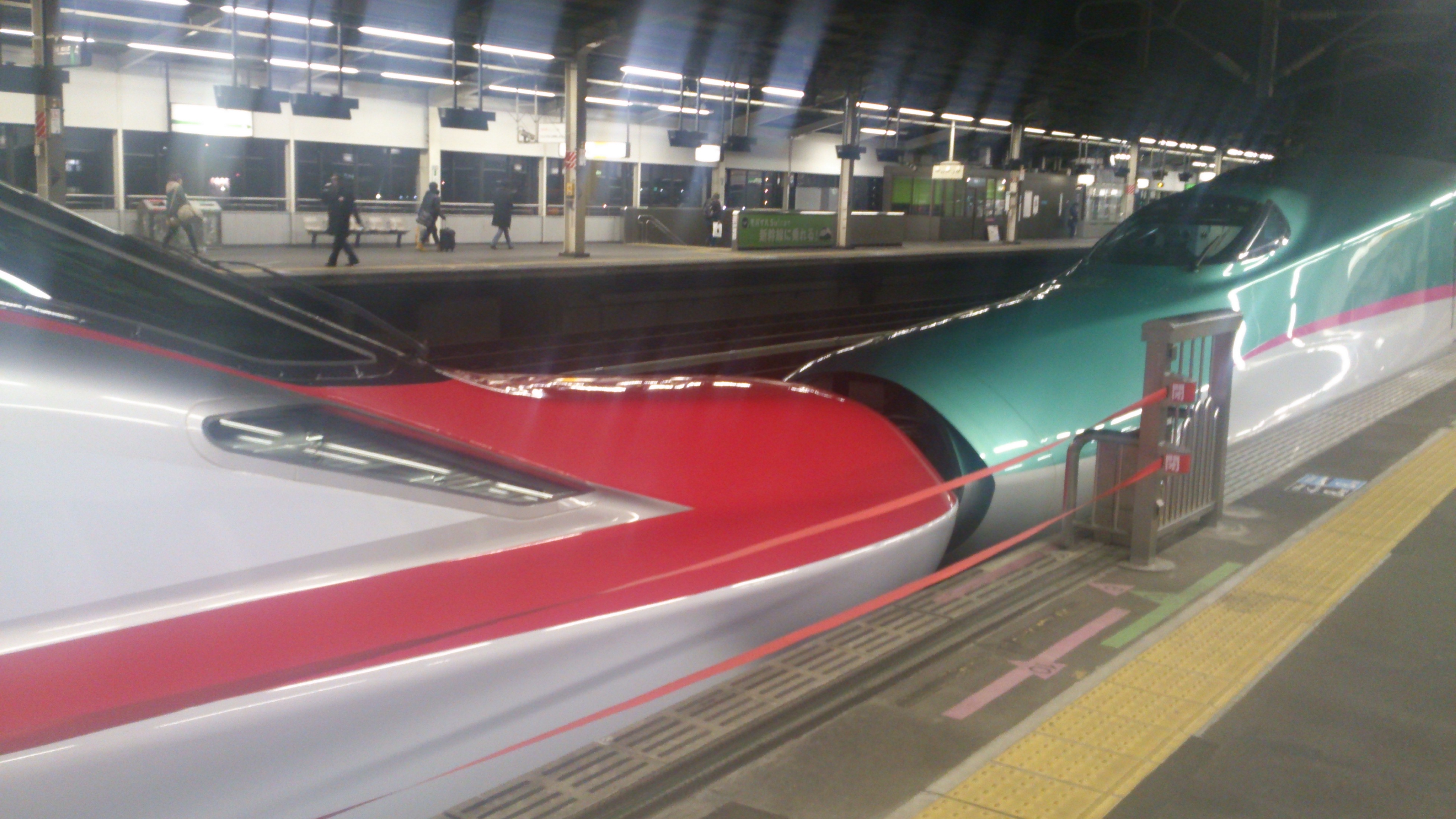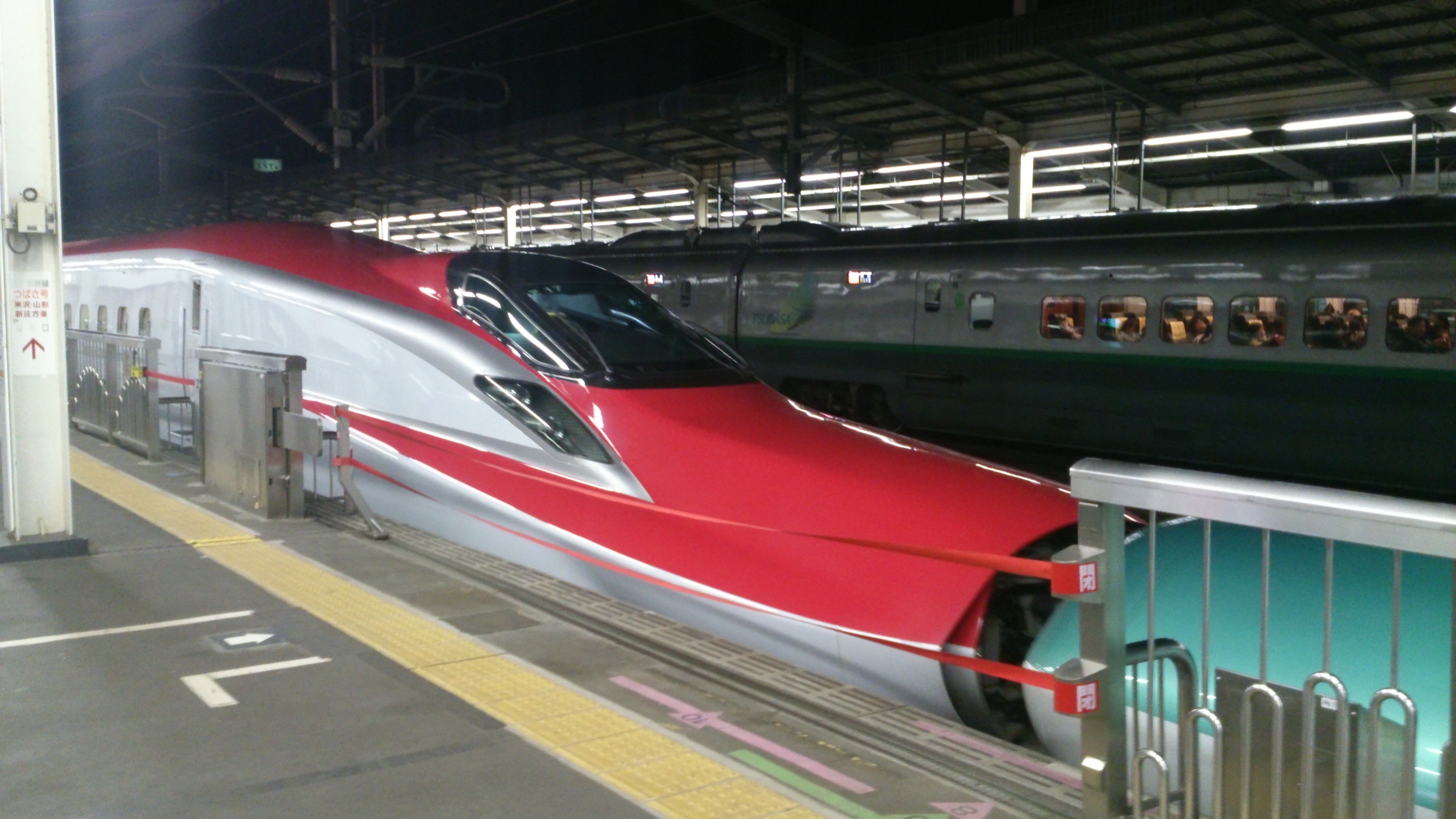 珍しく連結した車両に乗りました。赤い方が山形新幹線(ミニ新幹線)です。